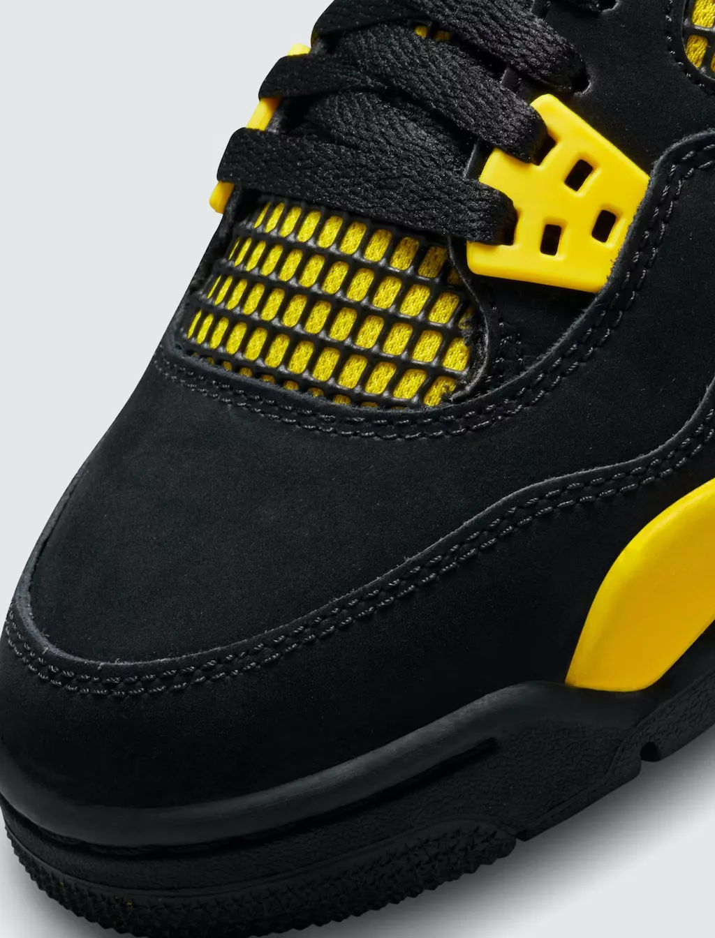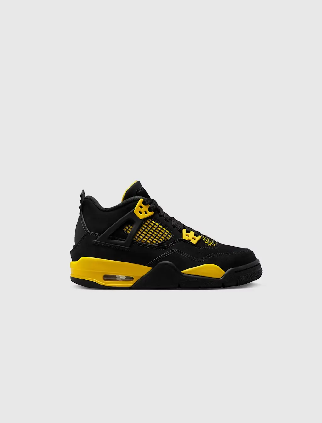 Don't get faked—the AJ4 "Thunder" is here for real. Straight out the vault, the coveted colorway returns true to form. It has the same materials and flashy Tour Yellow accents that hooked sneakerheads back in '06, plus original trimmings like a bold Jumpman on the tongue and the famous "wings" that let you customize your lace setup. This ain't no knockoff. Get 'em while you can.